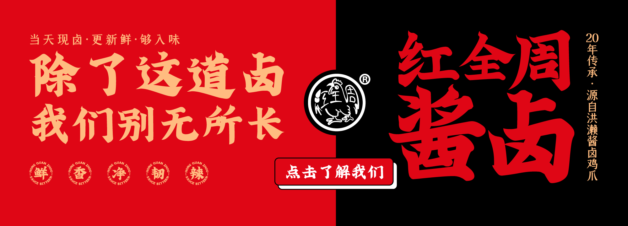 紅全周品牌創(chuàng)立于2012年,其生產(chǎn)總部坐落在以“紅全周雞爪”聞名的福建泉州市南安洪瀨鎮(zhèn),經(jīng)張福來師傅多年研制而成的獨家秘方,獨特的鹵制工藝,以“鮮、香、韌、辣”的特點,贏得廣大食客的交口稱贊。紅全周繼承中華美食傳統(tǒng),堅持以“細微處見風范,毫厘間定乾坤”的服務準則,遵循現(xiàn)代健康飲食理念,精選上等食材,致力為消費者提供安全、健康的美食新體驗。
